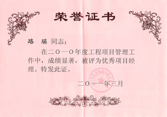 2011你那3月路瑤同志被評為優(yōu)秀項(xiàng)目經(jīng)理
