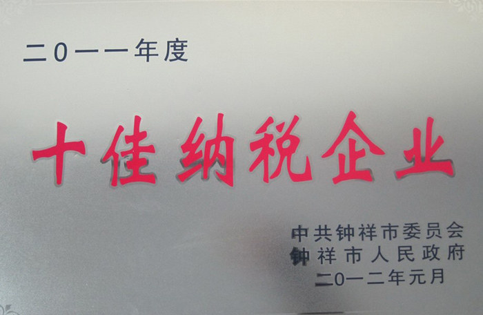 2012年1月榮獲2011年度十佳納稅企業(yè)