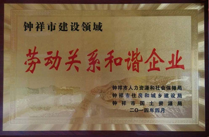 2014年4月鐘祥市建設(shè)領(lǐng)域勞動關(guān)系和諧企業(yè)