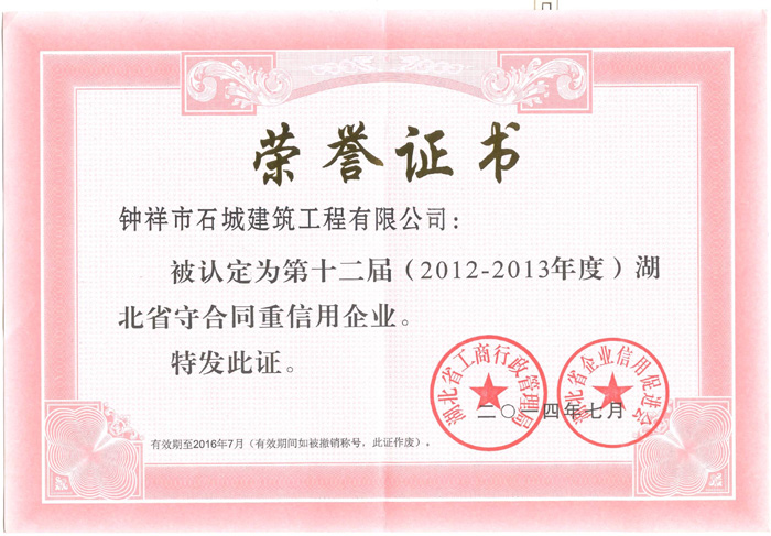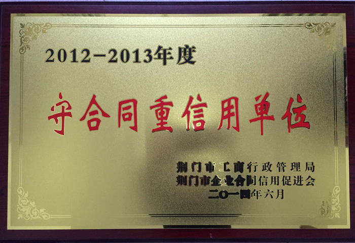 2014年6月被公示認(rèn)定為2012-2013年度“守合同重信用”單位